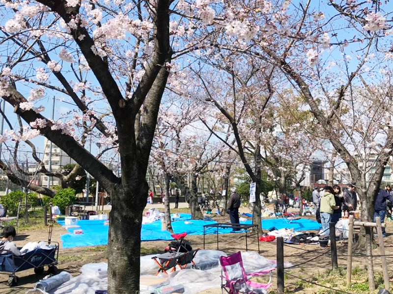 住吉公園は駅近でお花見バーベキューの人気のスポットです。バーベキュー可能エリアが狭いのがネックですが花見シーズンにはソメイヨシノがきれい に咲くおすすめBBQスポットです。